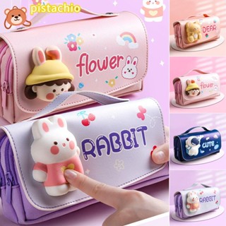 PISTA Hộp Đựng Đồ Dùng Văn Phòng Phẩm Hai Ngăn Cỡ Lớn Họa Tiết Hoạt Hình Sáng Tạo