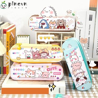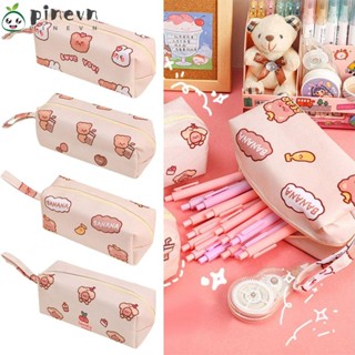 PINEVN Túi Đựng Bút Bằng Vải Canvas Đa Năng Họa Tiết Gấu Hoạt Hình Dễ Thương