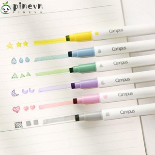 PINEVN Bút Lông Đánh Dấu Hai Đầu 6 Họa Tiết Khác Nhau Nhiều Màu Sắc Dành Cho Học Sinh