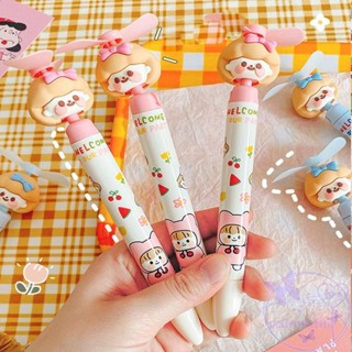 Bút Mực Đen Ngòi 0.5mm Kèm Quạt Họa Tiết Hoạt Hình Dùng Cho Văn Phòng