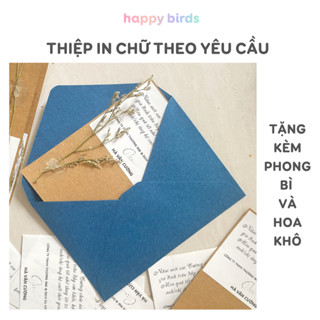 Thiệp in chữ theo yêu cầu tặng kèm phong bì hoa thiệp handmade Vintage in lời chúc mừng tặng bạn bè HappyBirds