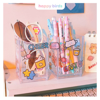 Ống đựng bút hộp bút trong suốt để bàn kệ đựng đồ nhựa PP chắc chắn đa năng tiện lợi ống cọ mỹ phẩm HappyBirds