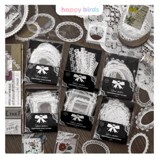 Sticker miếng dán bộ 30 sticker vintage họa tiết ren cổ điển không thấm nước trang trí sổ tay nhật ký HappyBirds