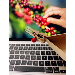 Kẹp gỗ trái cà phê (cafe) tặng dây cói sợi mảnh dùng kẹp miệng túi, decor sản phẩm, trang trí...