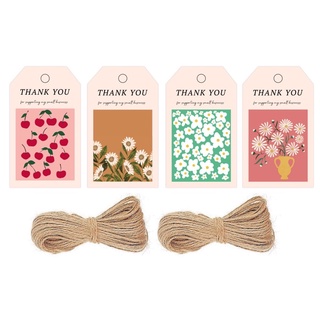 set 4 tag Thank You hoa cỏ kèm dây size 4 x 7 cm