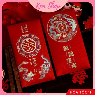 Bao lì xì chữ hỷ trao duyên họa tiết long phượng giấy nhũ cao cấp dùng cho đám cưới, ăn hỏi đại lễ - Kem Shop K286