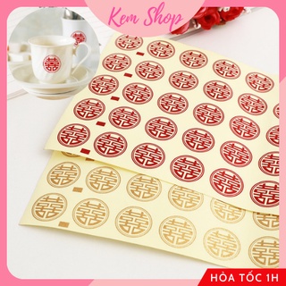 Decal chữ hỷ dán trầu cau, trái cây, tem dán chữ song hỷ trang trí đám cưới set 49 decal - Kem Shop K319