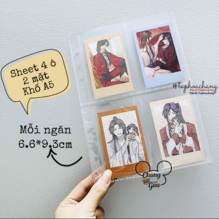 Sheet A5 đựng postcard, card kpod, thẻ bài, ảnh, phụ kiện sách truyện 4 ô, 2 mặt - Trang sheet lưu trữ 4 ngăn A5