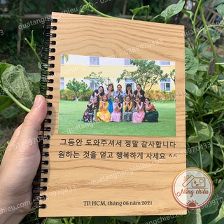 Sổ tay Notebook – Sổ gáy xoắn bìa gỗ khắc theo yêu cầu - Món quà sinh nhật ý nghĩa – Kích thước A5 (15x20cm)