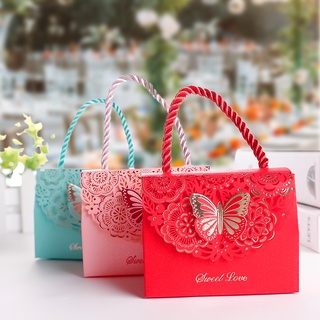 Hộp Giấy Đựng Kẹo Cưới Họa Tiết Bươm Bướm Phong Cách Trung Hoa Tinh Tế Có Tay Cầm