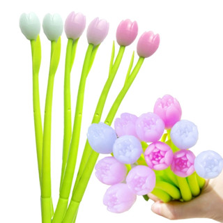 Bút Mực Gel Ngòi 0.5mm Bằng Silicon Hình Hoa Tulip Dễ Thương Siêu Bền Tiện Dụng Cho Học Sinh / Văn Phòng