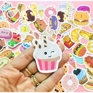 Bộ 30-50 Sticker hình bánh kem ép lụa , Sticker food xinh dễ thương