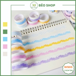 Cuộn băng keo washi tape Béo shop họa tiết mây nhẹ nhàng dễ thương dán trang trí sổ , album , nhật kí WS03