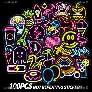 Set 100 Miếng Dán Màu Neon Dễ Thương Trang Trí Hành Lý DIY