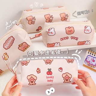 Túi Đựng Bút Bằng Vải Canvas Họa Tiết Gấu Hoạt Hình Dễ Thương Ốp