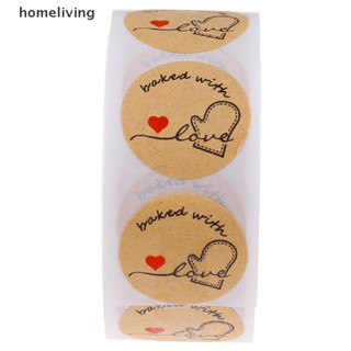Cuộn 500 Miếng Dán Trang Trí Hình Tròn Bằng Giấy Kraft Tự Nhiên In Chữ Baked with Love