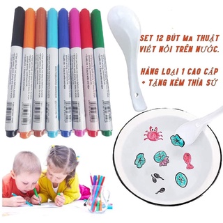 Set 12 bút vẽ nước ma thuật, vẽ hình nổi trên mặt nước, dùng được trên bảng trắng, đồ chơi giáo dục sớm cho trẻ em