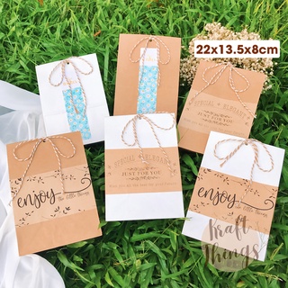 Hộp đựng quà kraft quai xách nhiều cỡ, hộp túi quà Tết Trung Thu 2023 kèm dây tag đỏ H07 Kraft Things