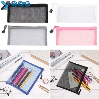 Túi đựng bút dạng lưới có khóa kéo màu trơn tiện dụng