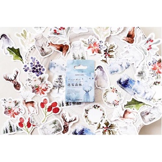 Bộ 46 Sticker Hàn Quốc hình Hoa Cỏ Động Vật Sương Mù dán trang trí E06