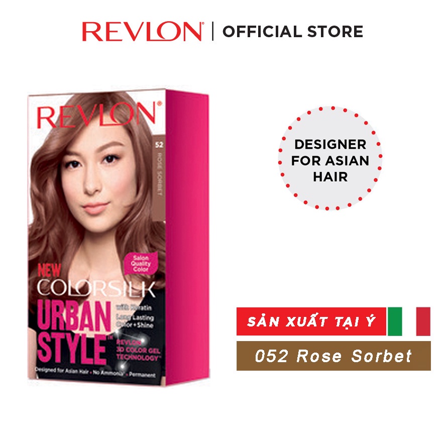 THÔNG TIN SƠ LƯỢC Thể tích thực: Kem tạo màu: 59.1ml, màu nhuộm: 59.1ml, kem xả bảo vệ tóc sau nhuộm: 11.8ml Thuốc nhuộm tóc Revlon Colorsilk Urban Style được làm giàu với Keratin và chiết xuất tơ tằm, mang lại mái tóc mềm mượt, bền lâu và bóng khỏe Đặc biệt sau khi nhuộm tóc sẽ rất thơm và không có mùi Amoniac. Thiết kế dành riêng cho người Châu Á Lên màu trong lần dùng đầu tiên Có 7 màu trendy theo các tông màu: nâu ánh xanh, nâu hạt dẻ, nâu đỏ, nâu vàng, xanh ánh khói, nâu choco ánh khói, đỏ rượu vang.