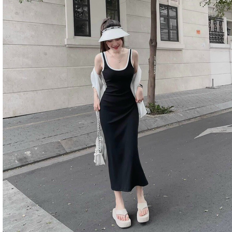 Giới thiệu Váy 2 dây body dáng dài viền, đầm nữ dài dự tiệc đen trắng mùa hè G73