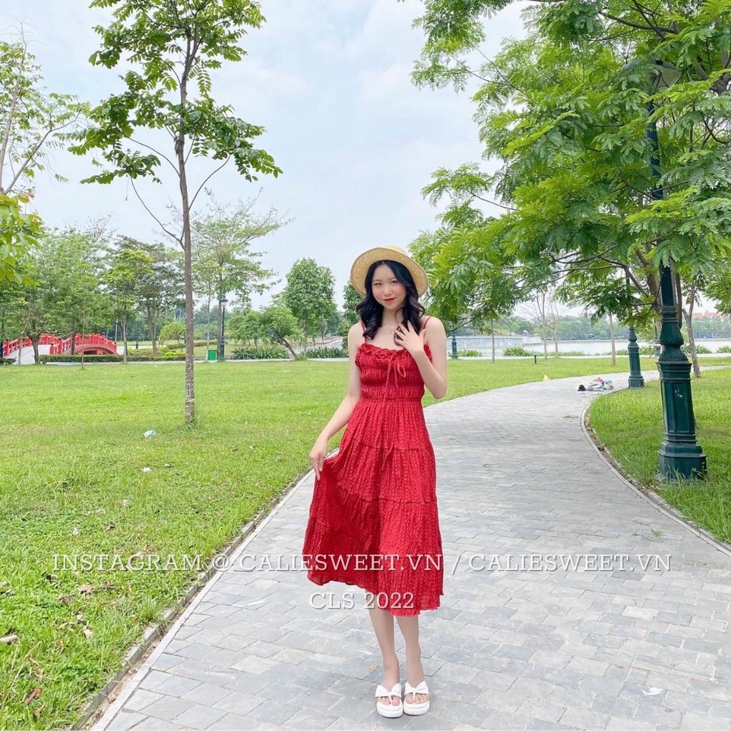 Giới thiệu Váy 2 dây dáng dài Caliesweet đầm maxi đi biển chất đũi xốp hottrend hè 2022