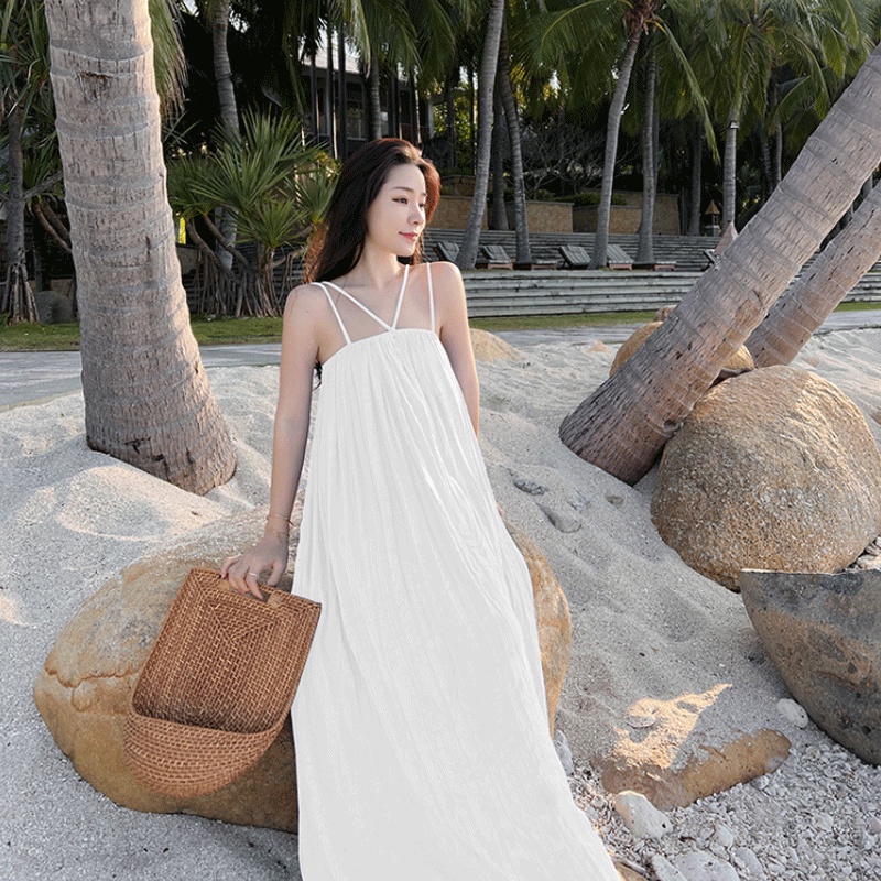 Váy 2 dây đi biển maxi dáng dài hở lưng nữ đẹp trắng dáng dài rộng bigsize bikini kiểu Hàn Quốc Babydoll