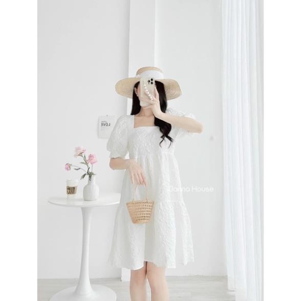 Thời Trang Nữ > Đồ Bầu > Đầm bầu > Váy bầu babydolCổ Vuông Tay Bồng Chất Đũi Xốp 3D, đầm bầu thời trang thiết kế công sở xinh xắn đáng yêu - tkutrang style