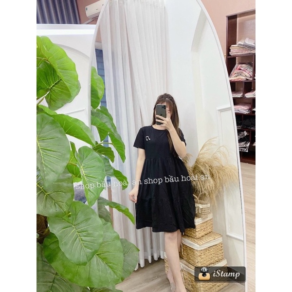 Giới thiệu Váy bầu cotton mùa hè, dáng xòe tầng cho mẹ bầu, thêu họa tiết nốt nhạc