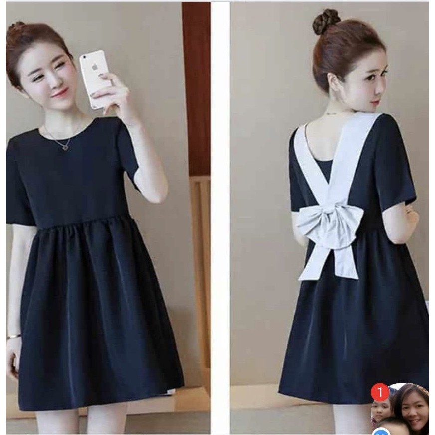 Giới thiệu Váy bầu DÁNG XÒE KẾT HỢP NƠ sau váy dáng tiểu thư siêu xinh W126