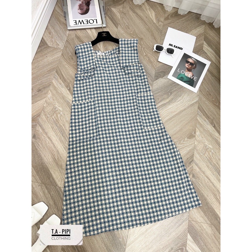 Giới thiệu Váy bầu thời trang,đầm bầu thiết kể kẻ cổ vuông kẻ caro mùa hè 2022
