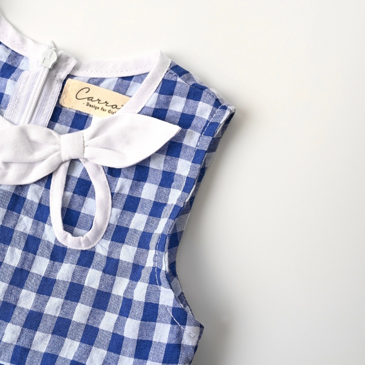 Giới thiệu Váy Bé Gái Carrot Không Tay, Cổ Viền Nơ, Hoa Tiết Caro Xanh Navy, Chất Thô Xốp Thoáng Mát Thấm Hút Mồ Hôi