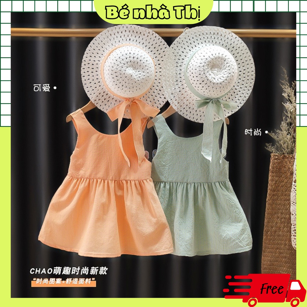 Giới thiệu Váy bé gái dáng xòe sát nách kèm mũ cotton mềm mát VX15 - BÉ NHÀ THỊ