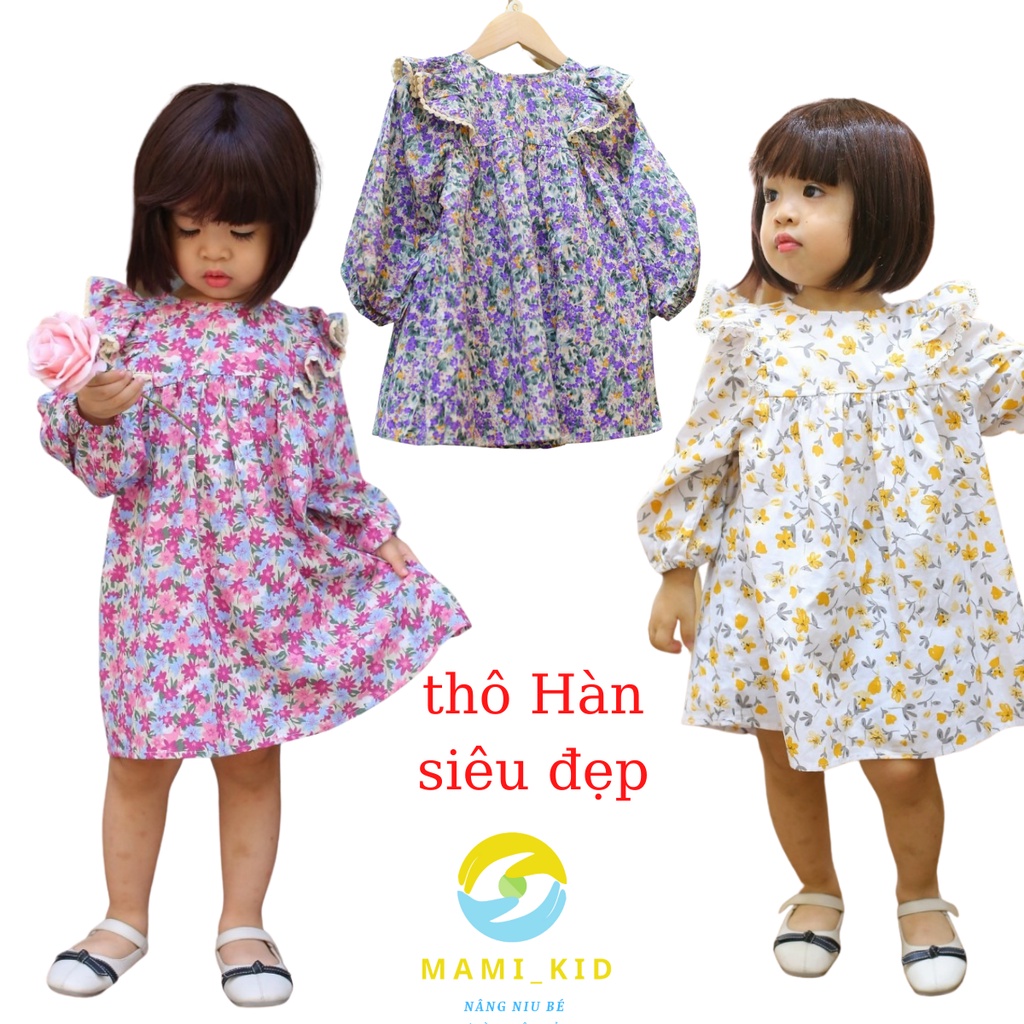 Giới thiệu Váy Cho Bé Gái, Váy Xinh Cho Bé Thu Đông Chất Liệu Thô Hàn 100 sợi cotton siêu đẹp, tôn dáng Shop Mamikid