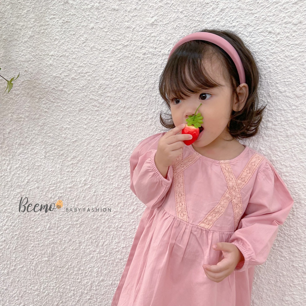 Giới thiệu Váy đầm babydoll Beemo viền ren xinh xắn vải thô hàn cho bé gái đi học, đi chơi từ 1 đến 6 tuổi 22185V