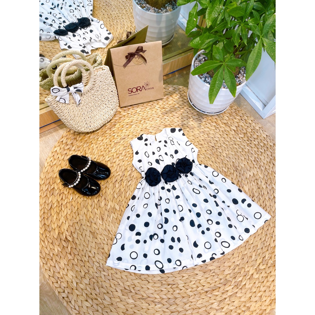 Giới thiệu Váy Đầm Bé Gái Chấm Bi Đen Ba Bông Hoa Đen SoraChan - M033