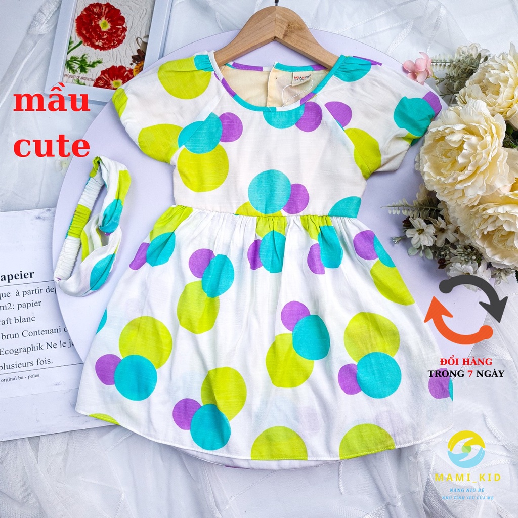 Giới thiệu váy đầm bé gái chất đũi nền chấm bi sang chảnh, 12-40kg ,Mamikid