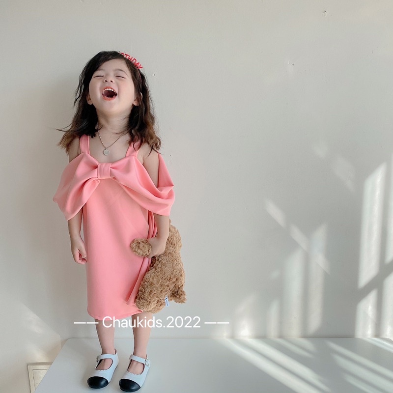 Giới thiệu Váy đầm liền hồng nơ xinh yêu cho bé gái