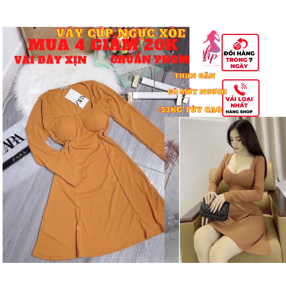 Váy đầm nữ cúp ngực có mút body dáng xòe tay dài màu đen thun gân sexy phong cách sang chảnh hàn VD142