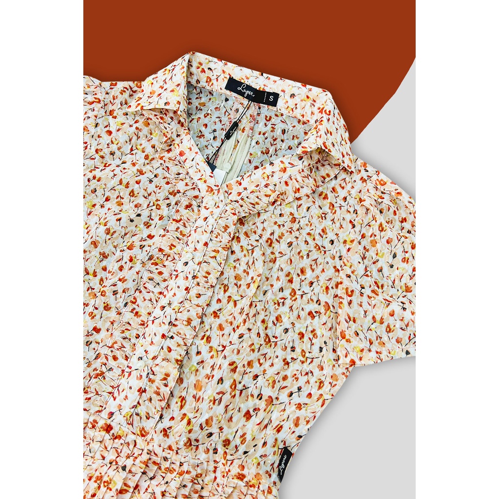 Váy Đầm Nữ Luperi LFV3292 Thiết kế Cổ V phối bèo viền cúc áo kết hợp chân váy xếp ly chất liệu voan mềm mại thoáng mát