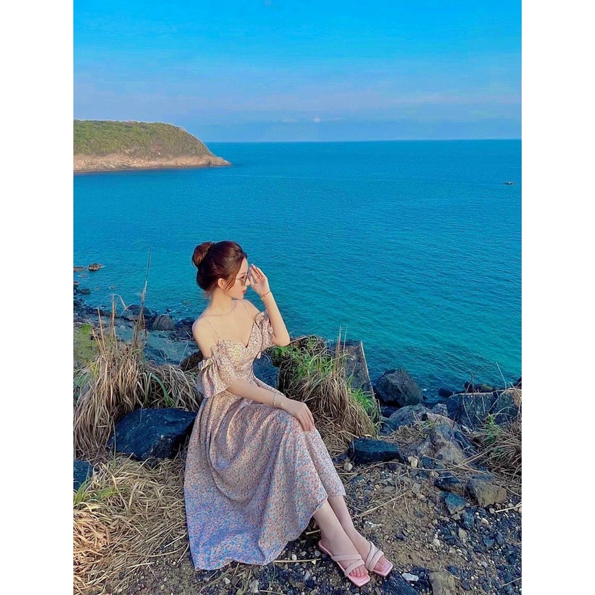 Giới thiệu Váy đầm nữ maxi dáng xòe hai dây trễ vai họa tiết dễ thương