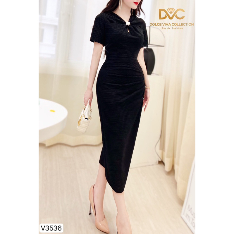 Giới thiệu Váy đen body khoét ngực kèm tag cài đá V3536- DVC