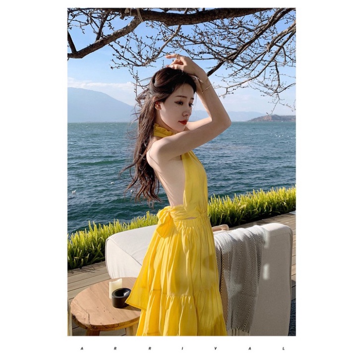 Giới thiệu Váy đi biển xòe LUHAZO nữ đẹp maxi 2 dây dáng dài rộng bigsize kiểu Hàn Quốc vintage babydoll hở lưng 1212 DK1T3