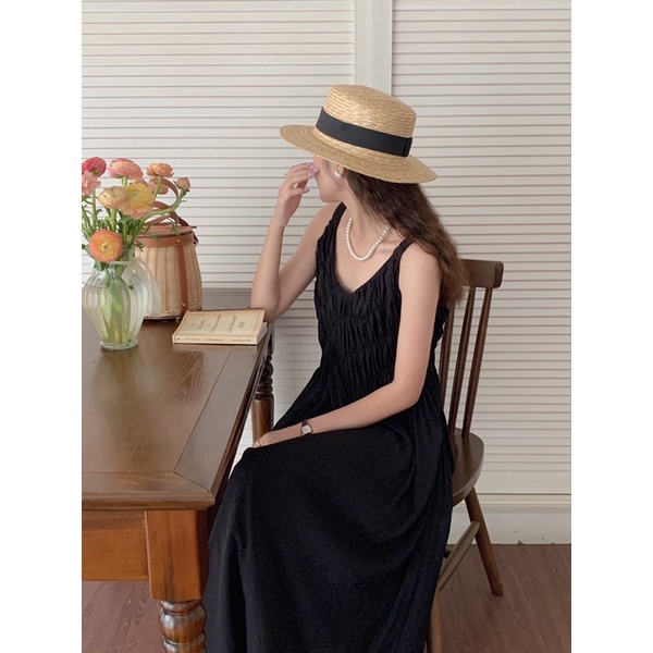 Váy hai dây chun cách điệu Hàn Quốc -V001 Freesize Chiều dài váy : 121cm Ngực max 95cm