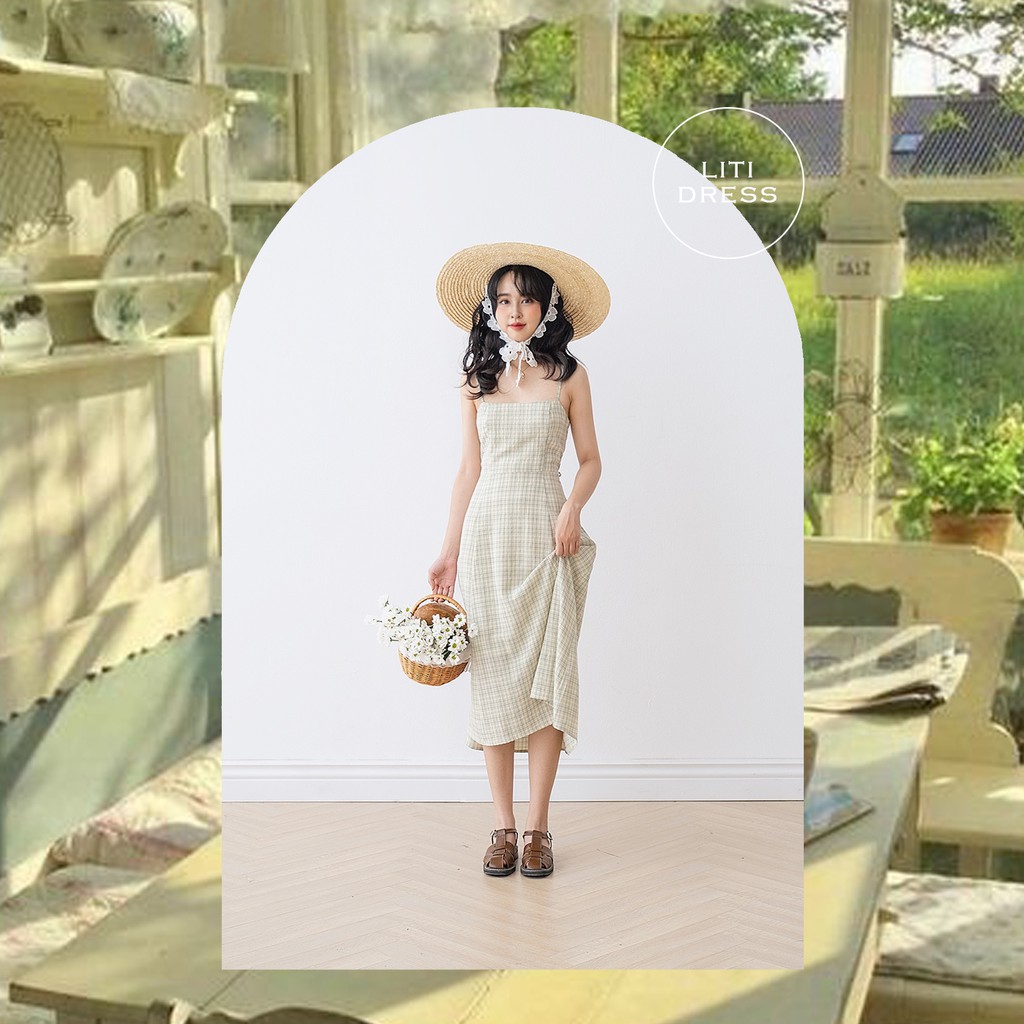 Giới thiệu Váy hai dây kẻ caro xanh trắng Naked By V - Liti Dress (Xanh)
