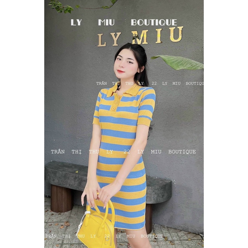 Giới thiệu VÁY LEN CỔ POLO PHỐI KẺ SỌC DÁNG NGẮN, DẦM SUÔNG CHẤT LEN MONGTOGHI CHUẨN HÀNG QUẢNG CHÂU