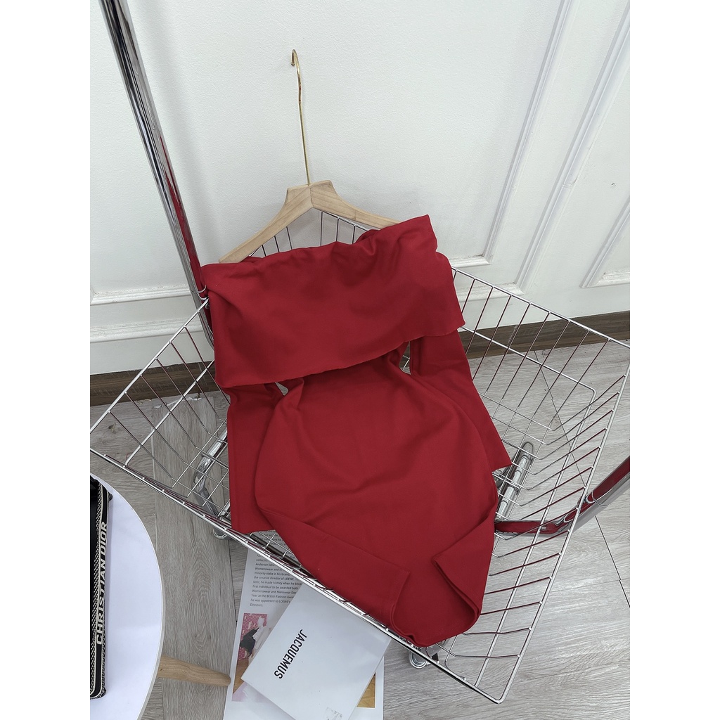 Giới thiệu Váy len tăm trễ vai body dài tay đỏ diện noen DN266