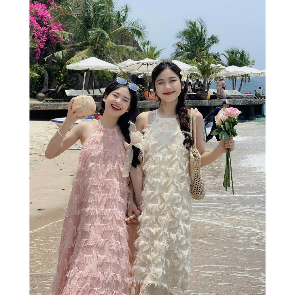 Giới thiệu Váy maxi 2 dây đi tua rua 2 lớp đi biển cực xinh hàng QC