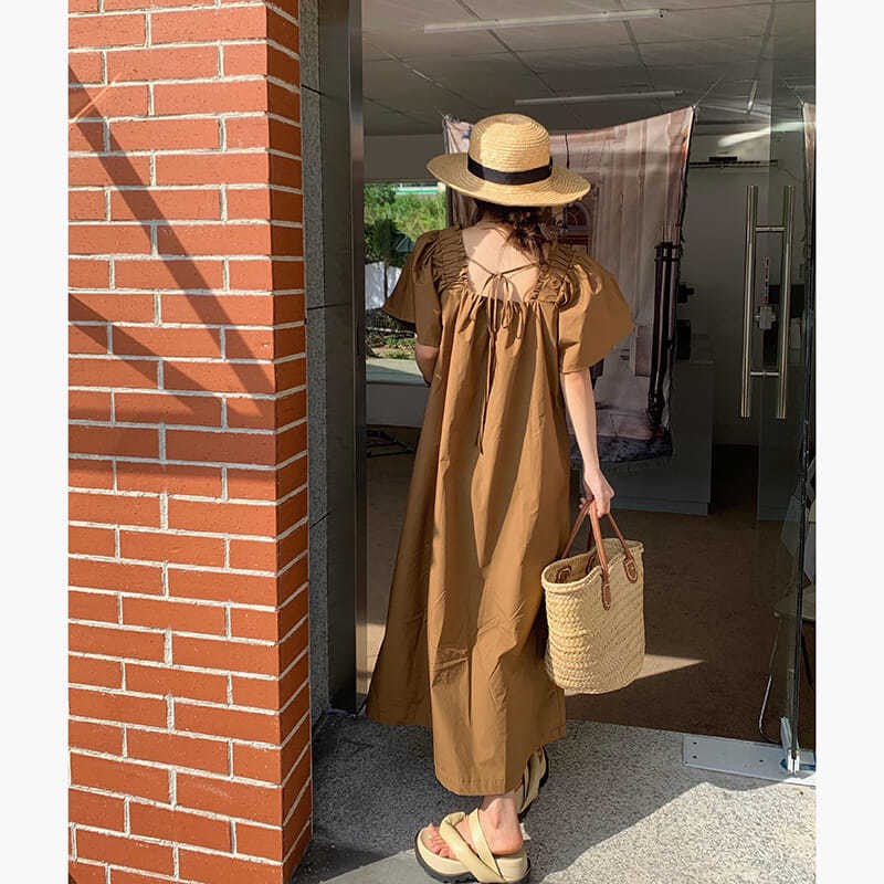 Giới thiệu Váy maxi cổ vuông tay bồng che khuyết điểm mùa hè 2023